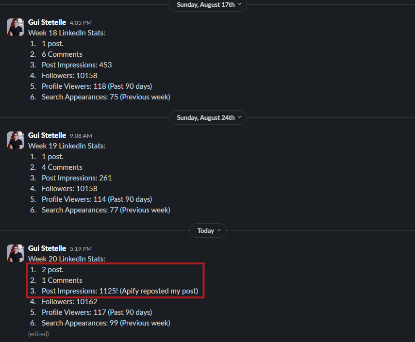 Still on the theme of content, last week was probably my first time experimenting with posting 2x/week on LinkedIn and surprise surprise, it was the best performance so far.