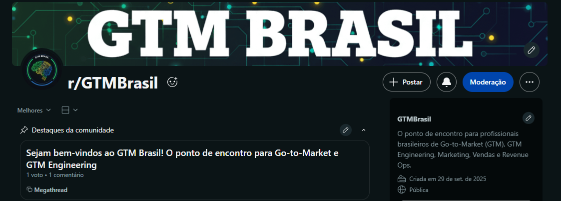 September was the month in which I launched the reddit community for GTM in Brazil (reddit.com/r/GTMBrasil/) and I am very excited about that.